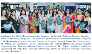 Joyalukkas, the World’s Favourite Jeweller, Launched Its Exquisite ‘Brilliance Diamond Jewellery Show’ at MG Road, Bengaluru. The event was graced by our esteemed customers, along with C.M. Manjunatha (Chairman-Narayan Bandapura Group of College), Triveni Raj (Cine Actress), Mr. Antony Jos (Excecutive Director, Joyalukkas), Mr. Thomas Mathew (Excecutive Director, Joyalukkas), Ms. Elsa Joy Alukkas (Director, Joyalukkas), Mr. Rajesh Krishna (Head-Retail, Joyalukkas), Mr. Saju Paul (Manager, Marketing), Jinesh VS (Regional manager, Karnataka) and other dignitaries.